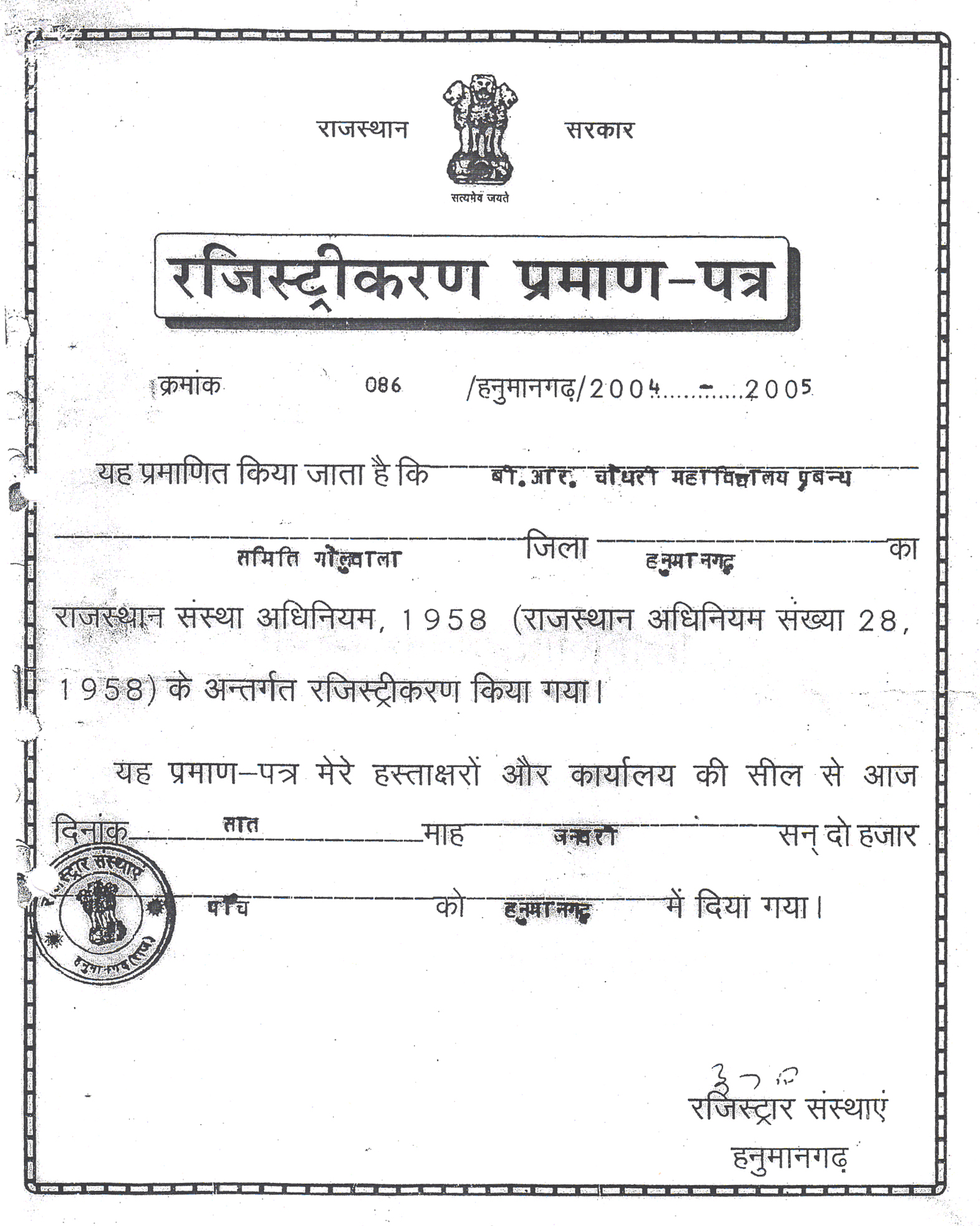 | Registration Number | 086/HANUMANGARH/2004-2005 |